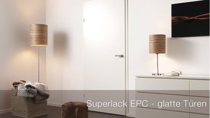 Unser Renner : Schleiflack ähnliche Hartlack-Oberfläche mit leichtem Glanz, unempfindlich und leicht zu pflegen . Mögliche Oberflächen sind ähnlich RAL 9010 und Extraweiß. Das Preisleistungsverhältnis ist bei dieser Tür unschlagbar . Neutrale Drücker Klassiker :